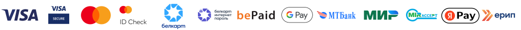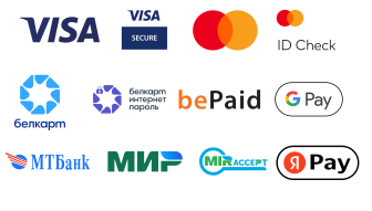 Мы принимаем платежи по следующим банковским картам: Visa, Visa Electron, MasterCard, Maestro, Белкарт, МИР.